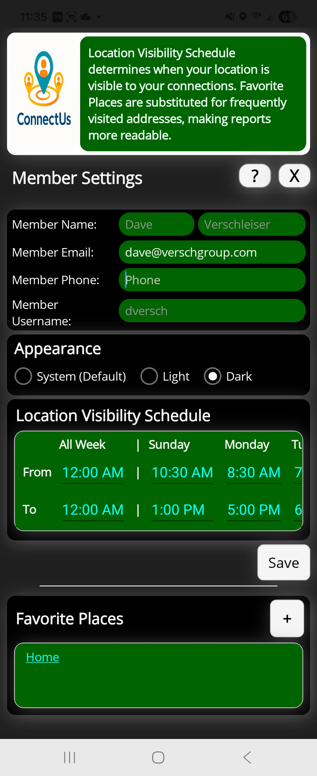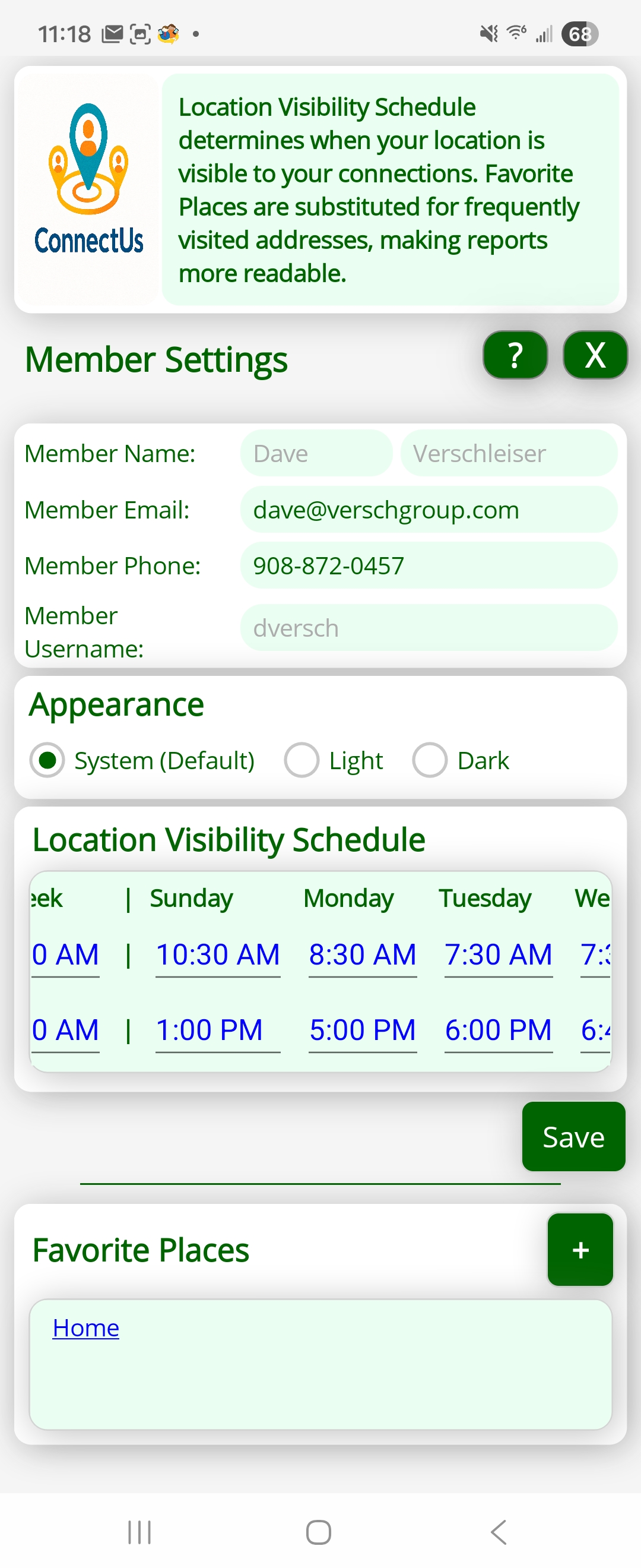 Privacy and control are core to ConnectUs. You decide who can see your location, when it’s shared, and under what conditions. Location visibility can be turned on or off at any time, and sharing is always intentional—never public, never automatic without your consent.
